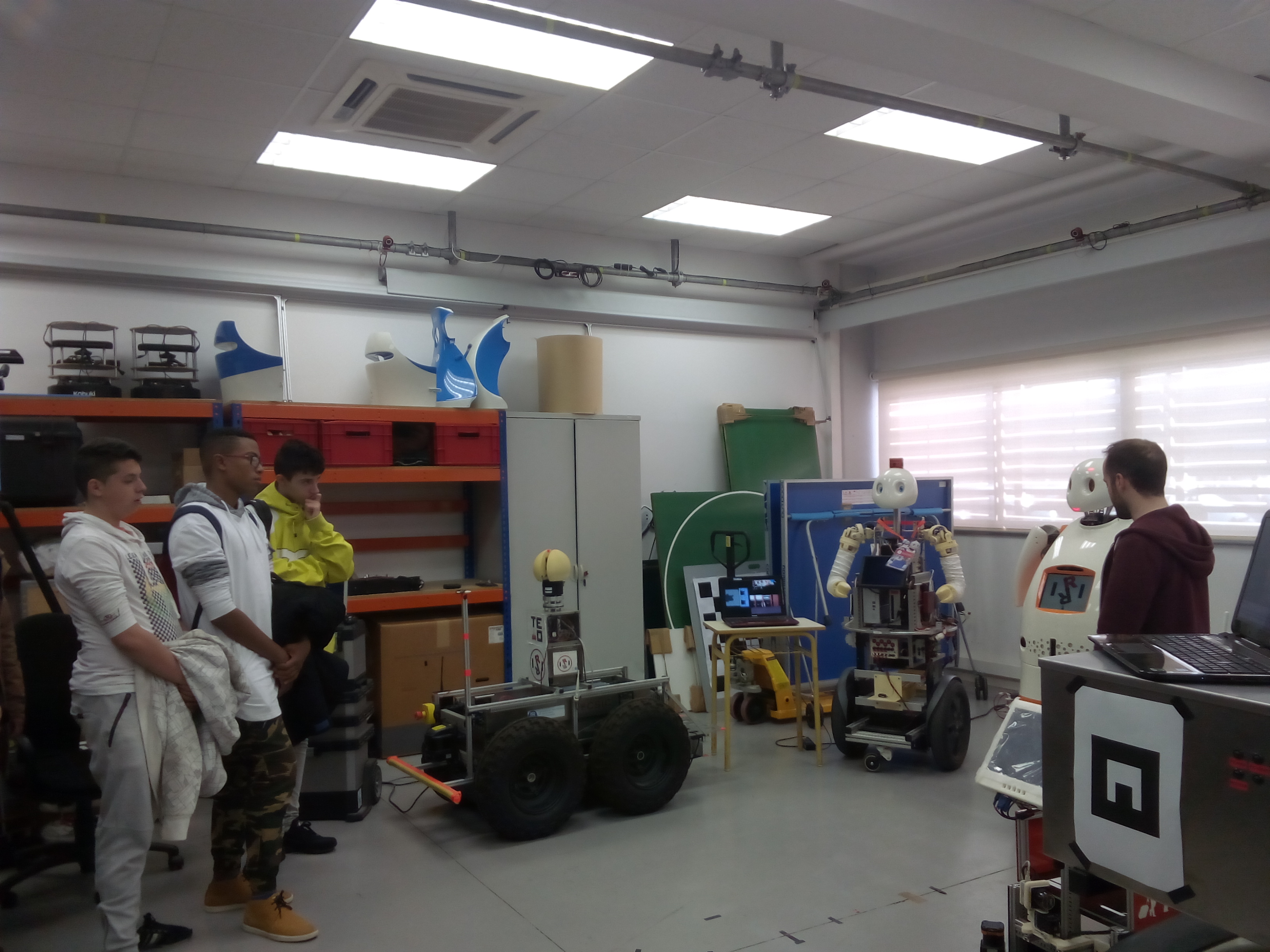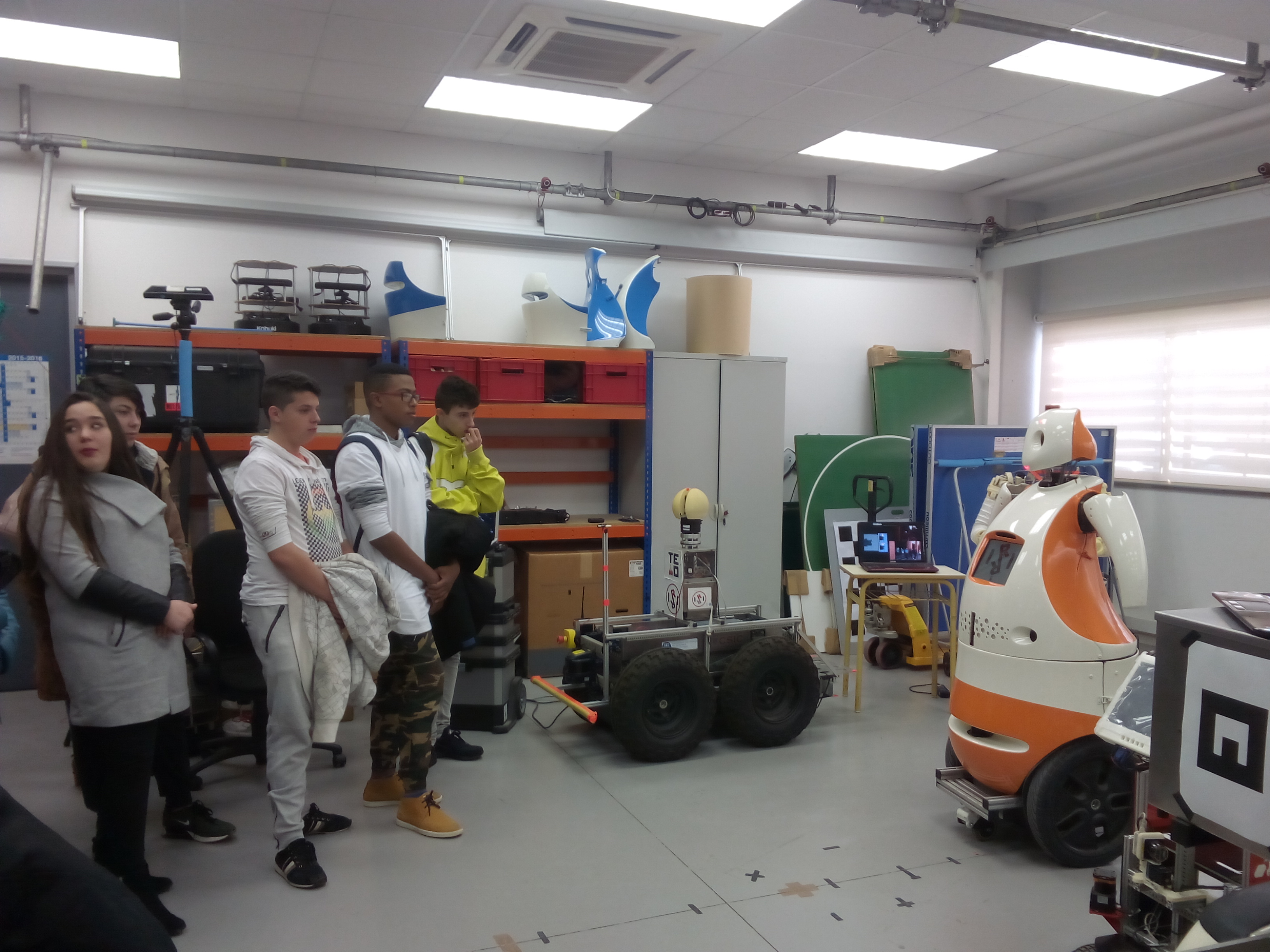 Les activitats de recerca de la línia ROBÒTICA MÒBIL tenen com a objectiu dotar els robots mòbils i dispositius de computació dels sistemes per ajudar els éssers humans en les activitats de la vida quotidiana. Aquestes habilitats van des d’activitats perceptives pures, com ara seguiment, reconeixement o coneixement de la situació, fins habilitats de moviment, com ara localització, mapatge, navegació autònoma, planificació de rutes o exploració. Aquí hem pogut veure i interactuar amb els robots humanoides, els drones i robots mòbils.
