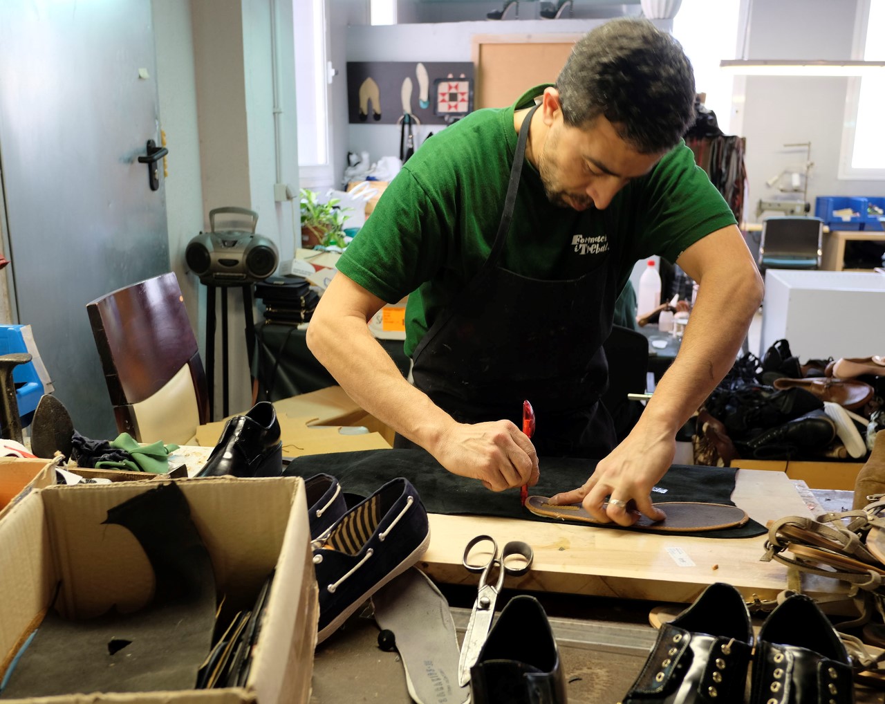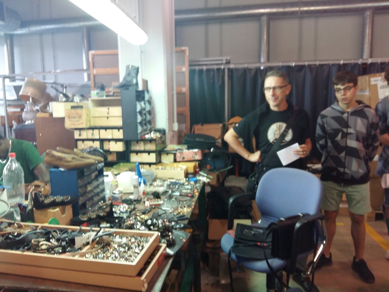 En primer lloc el taller de reparació i preparació de calçat i bosses.