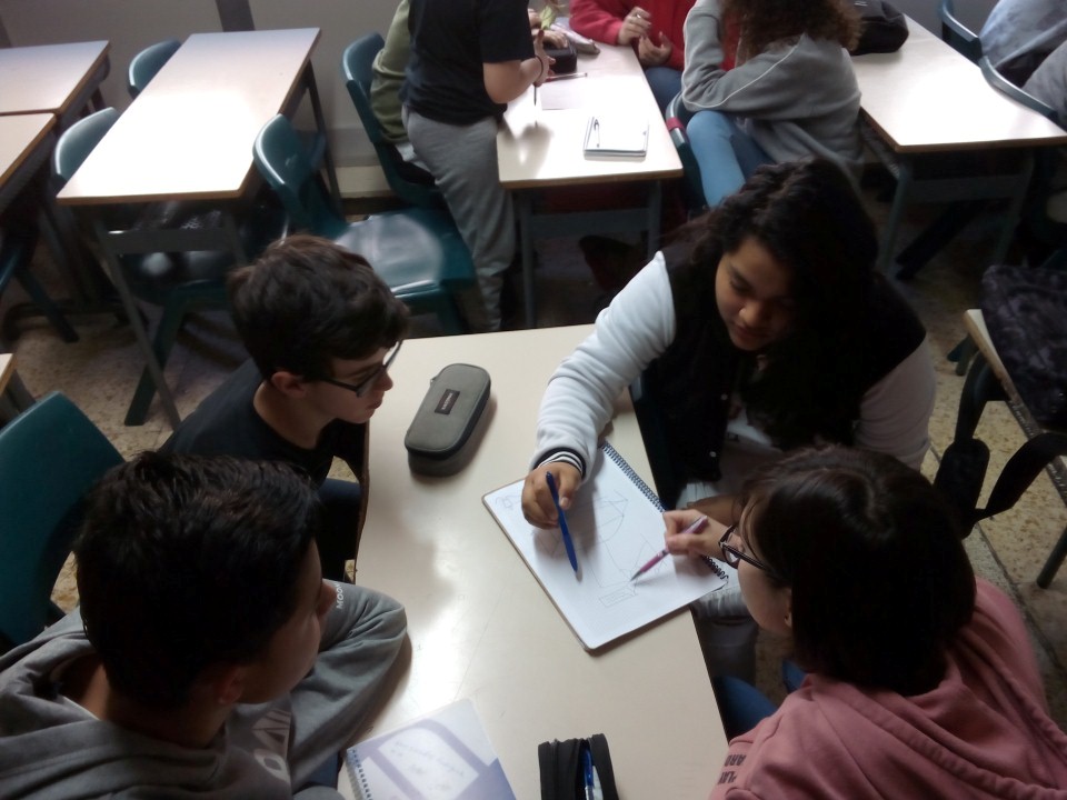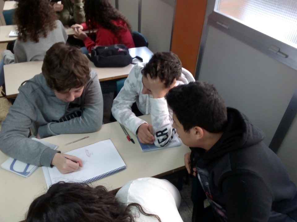 A partir d’aquest moment hem entrat en la segona fase, en la que hem de treballar per grups en l’elaboració de representacions artístiques dels conceptes explicats. Després de la ponència i amb les explicacions de l’Alba ben fresques els diferents grups han anat pensant en les seves obres, materials que necessiten, temporalització de l treball… Tots volen ser el grup seleccionat per representar la classe i l’escola a la final del concurs.