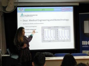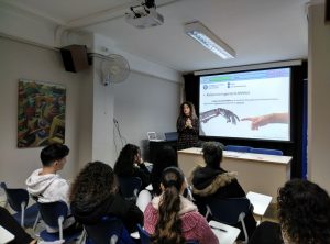 Han realitzat la càpsula “El camí de l’escola secundària a la societat: millora a través de la ciència i l’enginyeria”. La investigadora ha compartit la seva experiència personal i els passos que ha seguit des de l’escola secundària fins al seu doctorat, passant per un parell d’Erasmus a Alemanya. Ens ha explicat què s’estudia en el grau d’Enginyeria Biomèdica, destacant el caràcter interdisciplinari d’aquest camp i el seu impacte social, a més de les seves sortides professionals a la indústria i la recerca. Després de la seva explicació, els alumnes han pogut resoldre els seus dubtes.