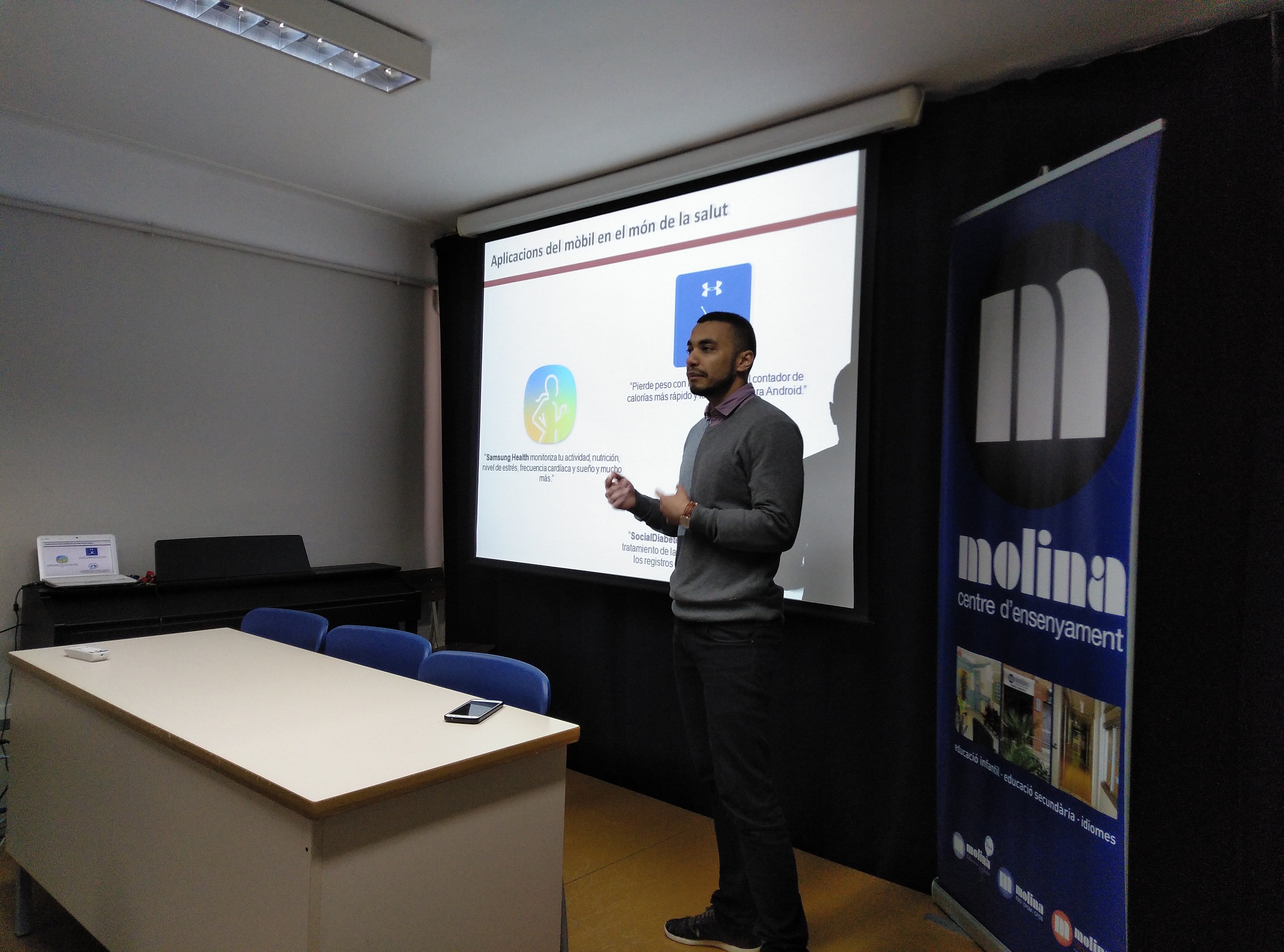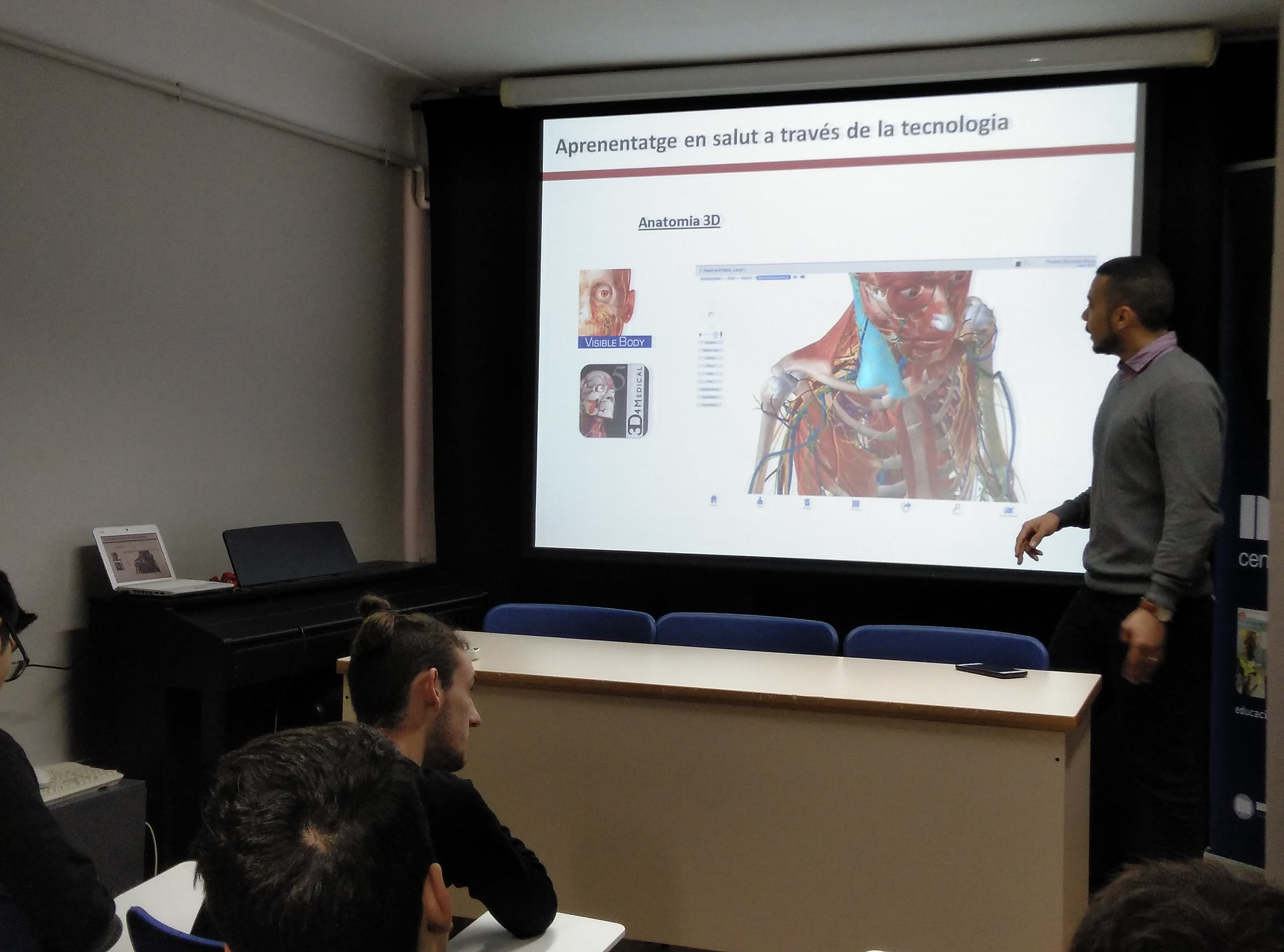 En Vini Rosa ha impartit el taller ” Aplicacions Mòbils i Tecnològiques en la Salut” als alumnes de CFGM I i II en anglès. Els ha ensenyat diverses aplicacions com una que ens informa sobre la nostra salut, la quantitat d’activitat que hem realitzat, la freqüència cardíaca, Samsung Health ; altres que ajuden a fer pràctiques mèdiques com Medical Training Simulator o altres que ajuden a la socialització i a la realització d’exercici físic sense adonar-nos com Pokemon Go. Aquestes eines són una motivació extra per a realitzar una activitat, a qualsevol lloc en grup o no.