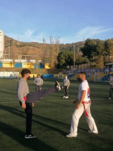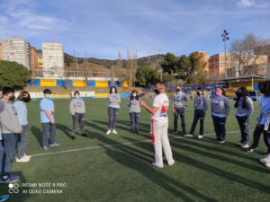 Amb el mestre  Cacau Palmas el nostre alumnat ha après els moviments bàsics d’aquesta art marcial i ha pogut escoltar i cantar la música tradicional de la capoeira.