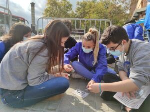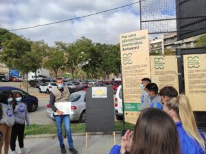 Aquesta setmana, l’exposició ha estat al nostre barri, al costat del Mercat de Montserrat, i no hem volgut perdre l’oportunitat de que els nostres alumnes reflexionessin sobre la seva alimentació: diferències entre productes naturals, processats i ultraprocessats, els additius alimentaris, la petjada de carboni dels aliments que consumim… gràcies a un escaperoom/joc de pistes.