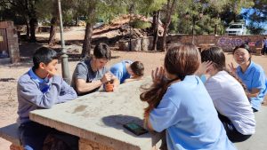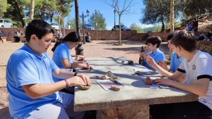 Després de la visita a les coves vam fer un taller Explorant la història de les Coves, a través del qual van fer un recorregut per les etapes que han caracteritzat les Coves de Montserrat, des de la prehistòria fins a l’actualitat: es van posar a la pell dels prehistòrics habitants de les coves per fer ceràmica, dels fabricants de pólvora medievals a partir del salnitre o dels primers exploradors que hi van entrar, fa més de 150 anys.