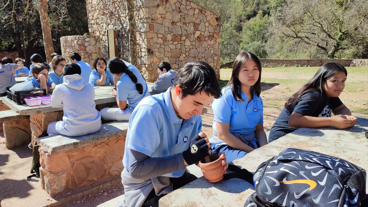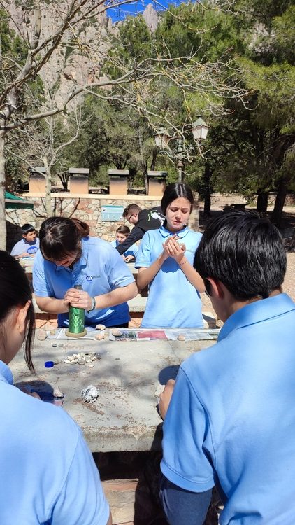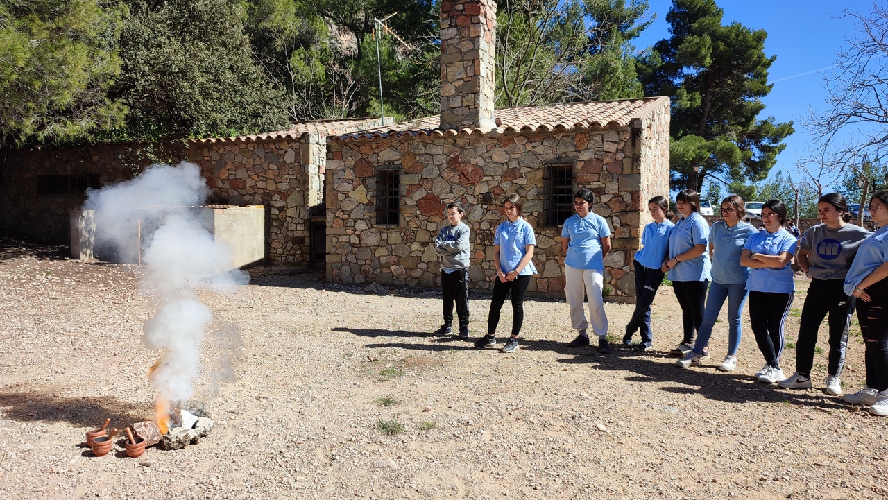 Després de la visita a les coves vam fer un taller Explorant la història de les Coves, a través del qual van fer un recorregut per les etapes que han caracteritzat les Coves de Montserrat, des de la prehistòria fins a l’actualitat: es van posar a la pell dels prehistòrics habitants de les coves per fer ceràmica, dels fabricants de pólvora medievals a partir del salnitre o dels primers exploradors que hi van entrar, fa més de 150 anys.