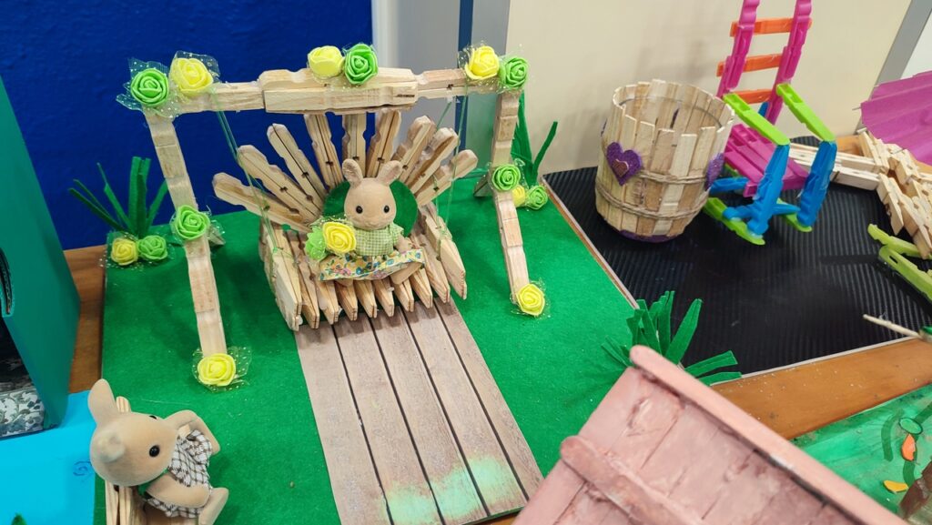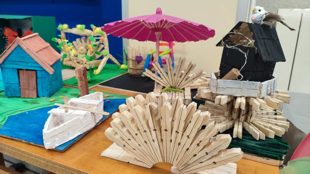 A més, a la secretaria de l’escola ja es pot visitar l’exposició dels treballs dels alumnes de 1r d’ESO: unes maquetes i diorames creatius elaborats amb pinces de la roba dins l’assignatura de Visual i Plàstica. Us convidem a acostar-vos-hi i gaudir de la seva imaginació i dedicació!