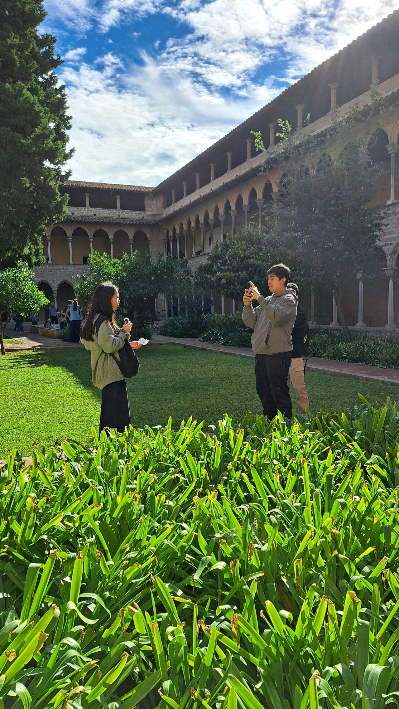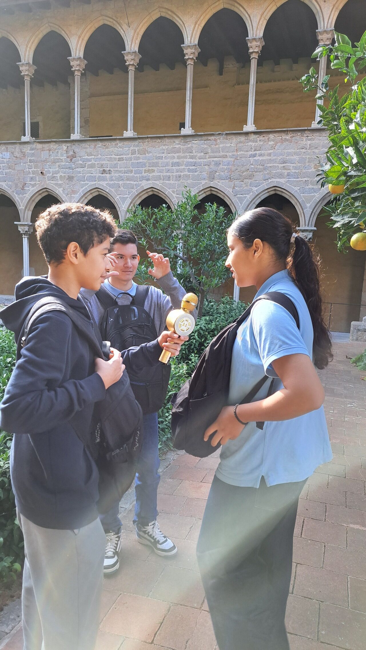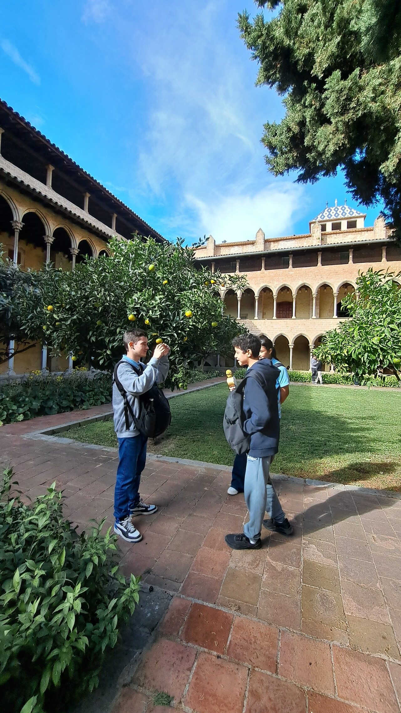 → per últim, han filmat una crònica de la visita al claustre del Monestir.