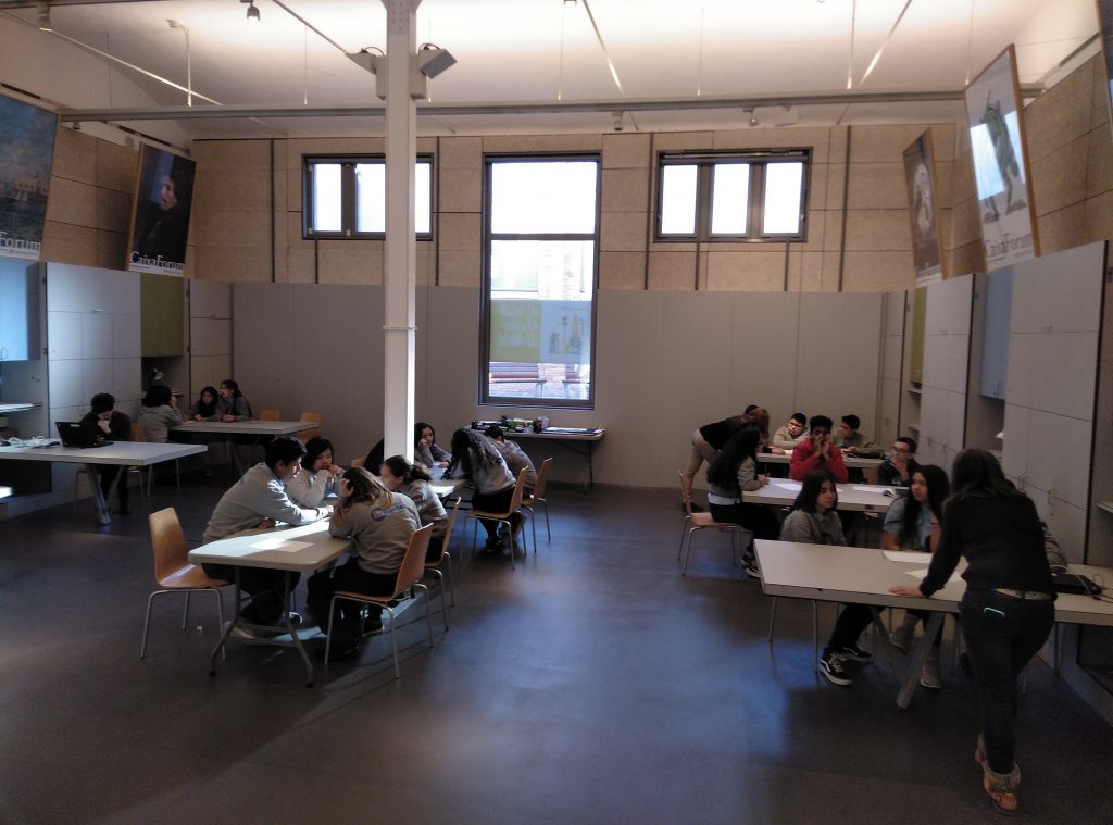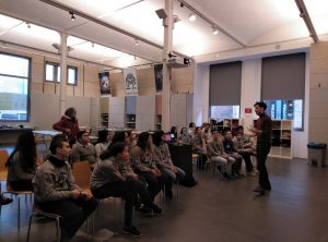 Y una parte práctica, donde los alumnos han hecho de diseñadores gráficos. Se han hecho grupos y Jordi ha dado una palabra a cada uno, por lo que ha debido pensar la información que querían transmitir y han diseñado composiciones con diferentes soportes. Después han explicado el significado de su diseño.