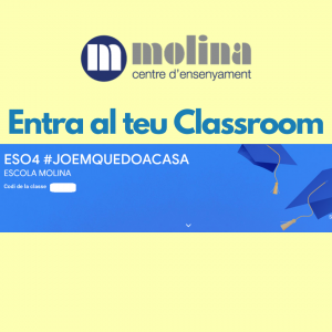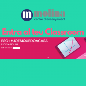 Para hacer el acompañamiento a sus hijos e hijas durante estos días de confinamiento, y puedan seguir las tareas educativas, el equipo docente de la escuela ha preparado un espacio «Classroom» con diferentes actividades de todas las materias.