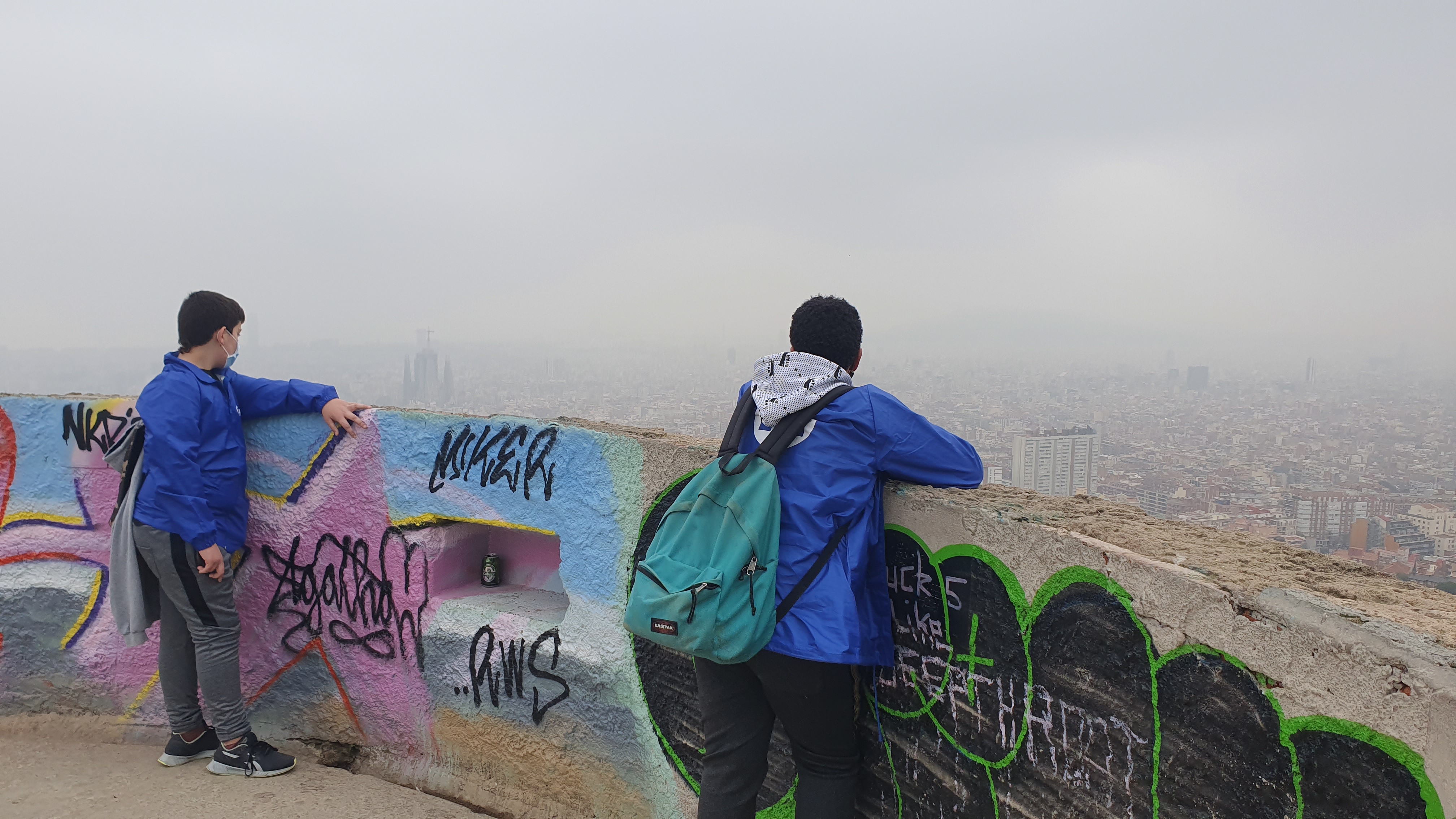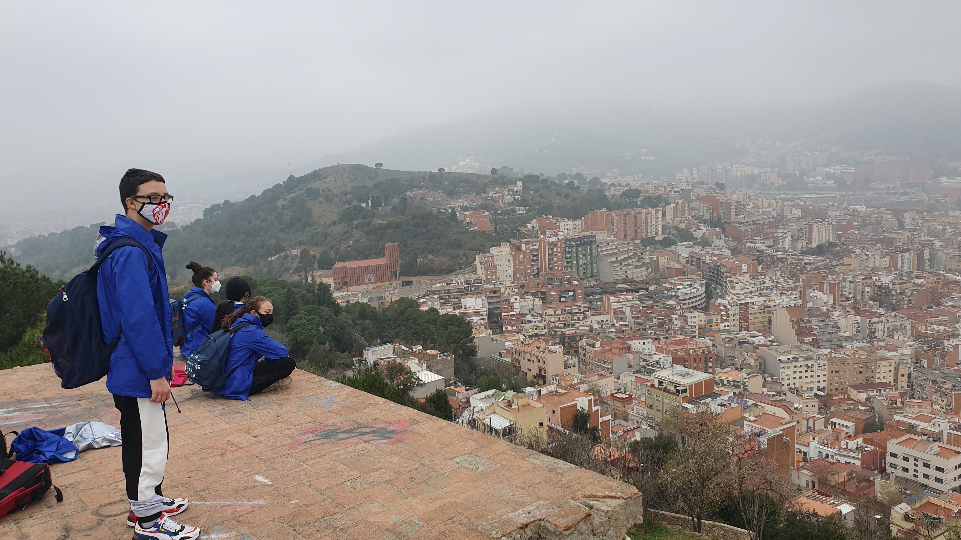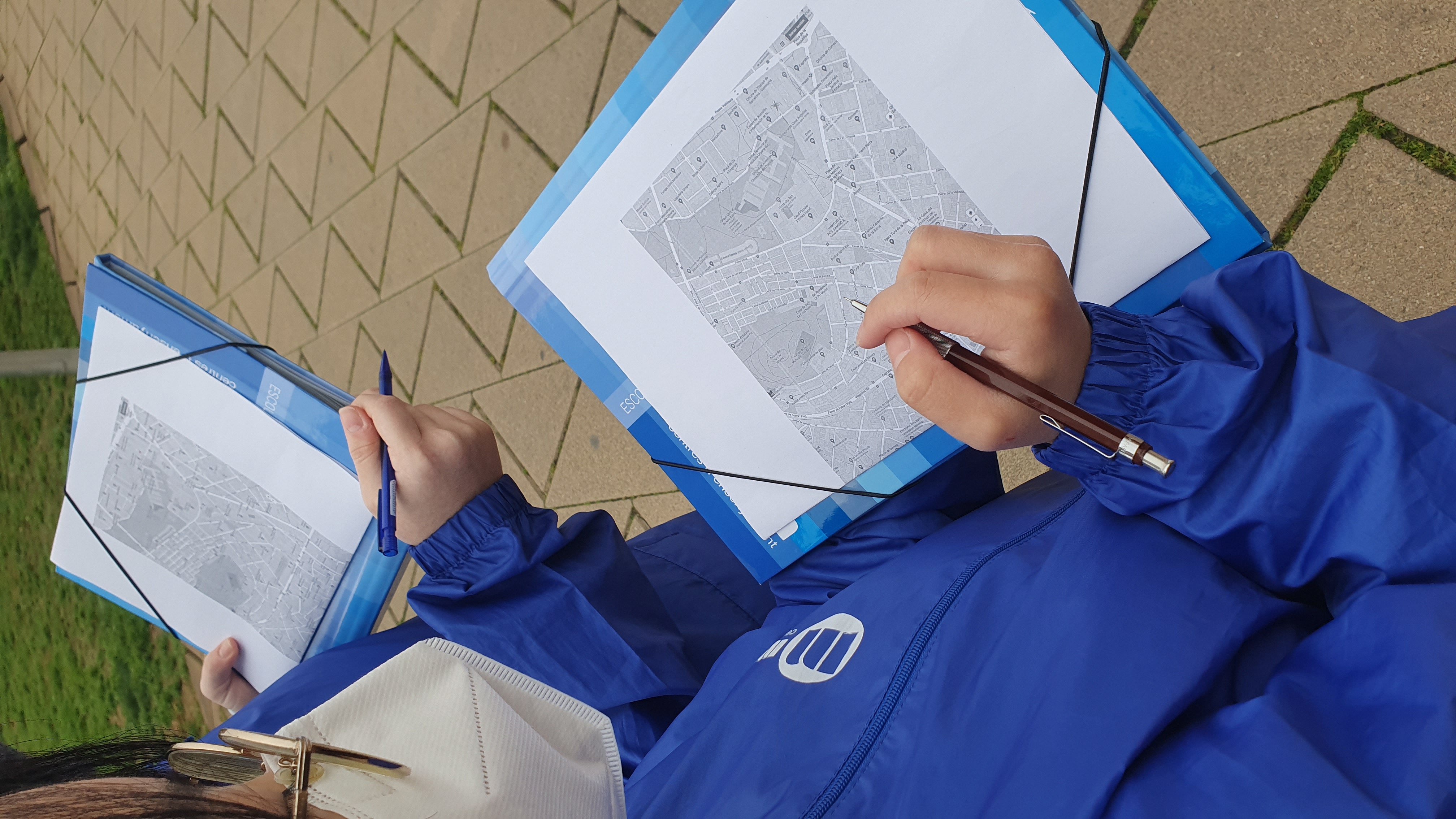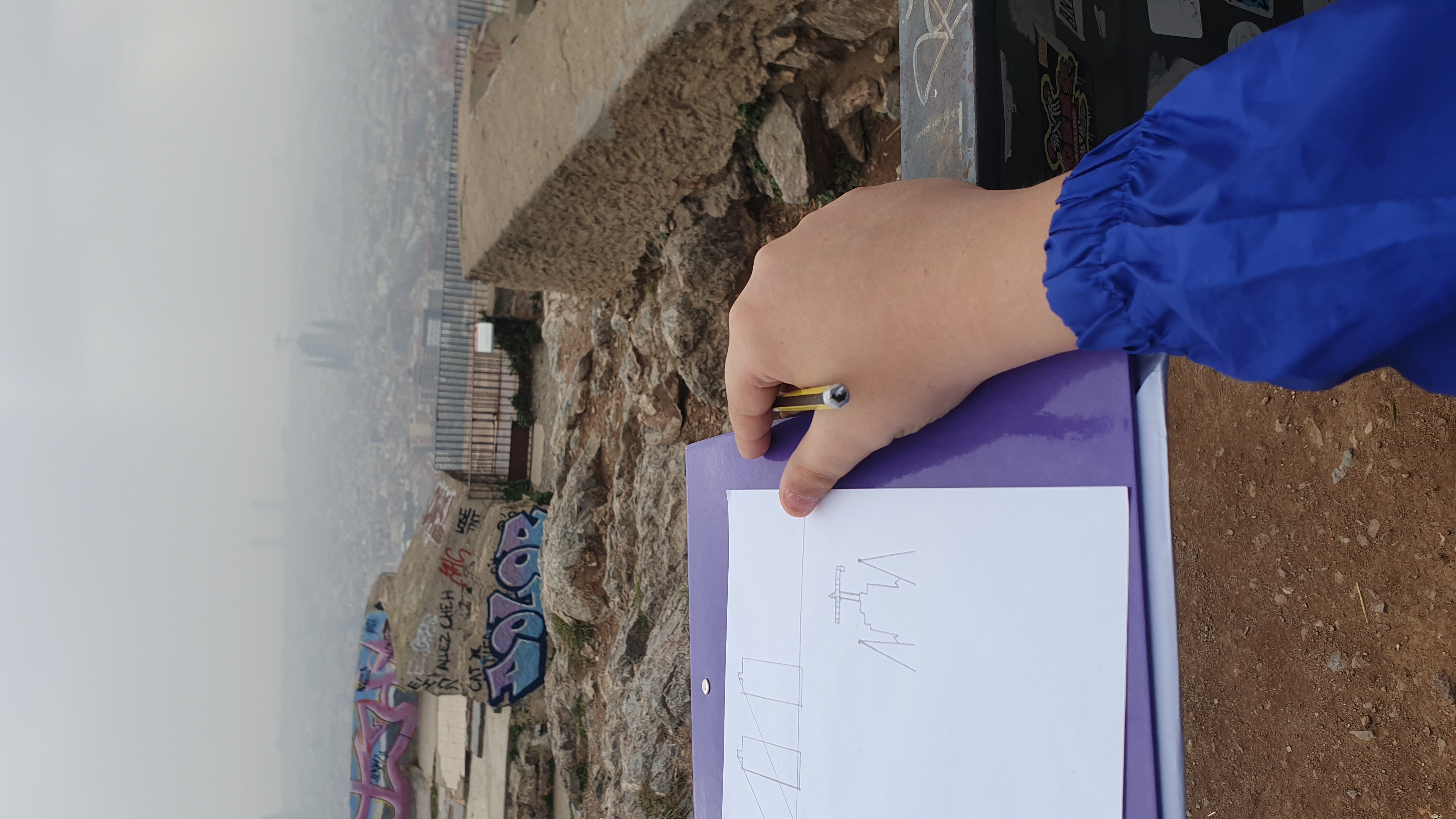En un mapa tuvieron que trazar el recorrido que seguían para hacer unos cálculos matemáticos que Helena les había explicar: desde la escuela fueron hasta las casas baratas de Nou Barris, bajaron por la calle Sant Iscle (antiguo camino de salida de la ciudad de Barcelona para ir a Collserola). Pasaron por el Mercado de la Merced de Virrei Amat, la Iglesia de Santa Eulalia de Vilapicina de la calle Fabra i Puig, donde también hay una masía antigua convertida en el Centro Cívico Can Basté y el magistral Ca n’Artés, casa de construcción medieval. Cruzamos el Paseo Maragall para hacer la subida al Turó de la Rovira, hasta la cima donde están los famosos Bunkers.