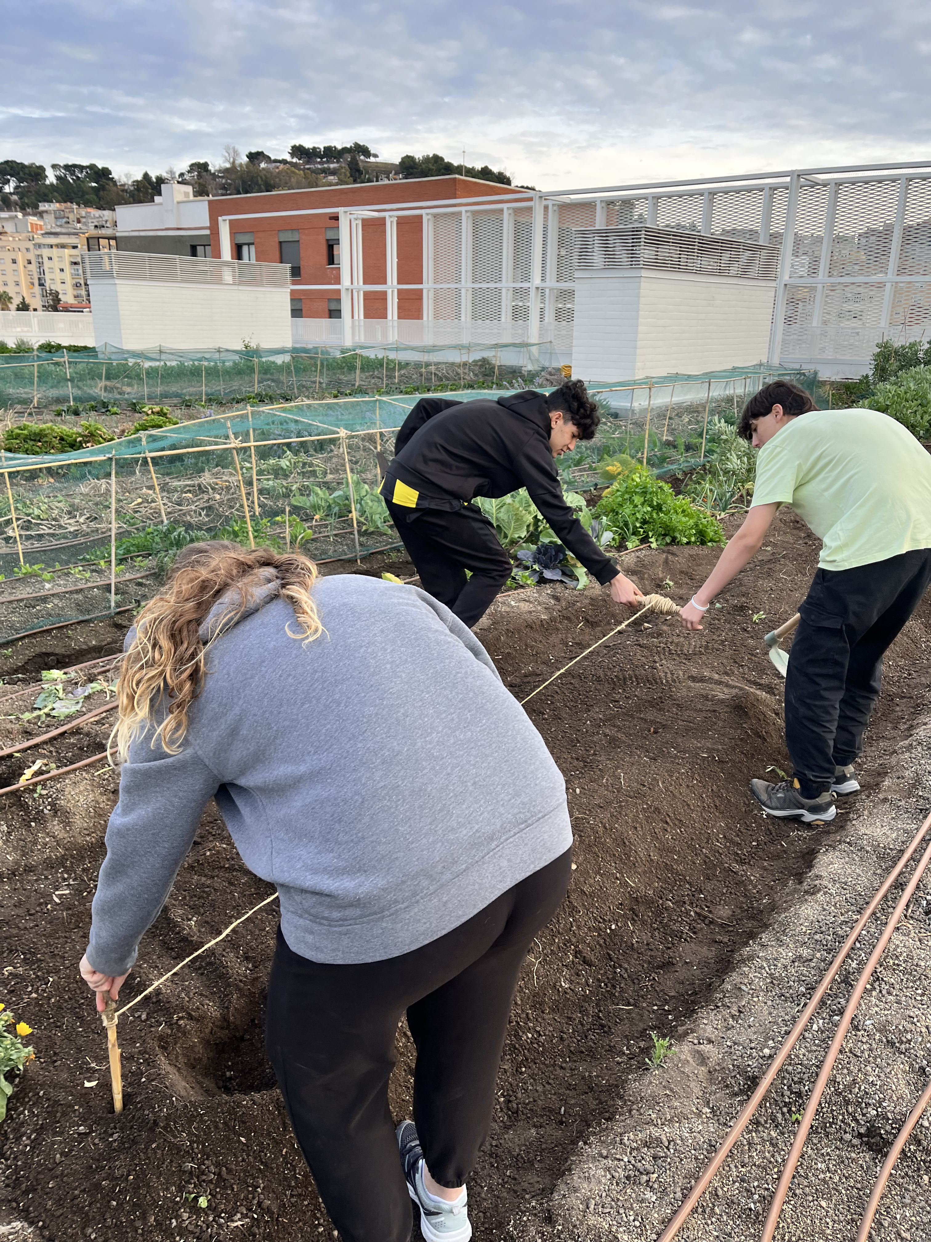 Es el segundo curso que la Escola Molina colabora con ¿Cómo funciona Barcelona?, para realizar tanto la parte teórica (10h) y, la cooperativa Tarpuna por la parte práctica (10h). Como nuestro servicio se realiza en el Huerto del Mercado, huerto construido en la cubierta del Mercado del Vall d’Hebron y la Teixonera, hemos trabajado sobre el consumo responsable, el desperdicio de los alimentos y cómo reducir el problema. Antes de la parte práctica realizamos una visita al mercado y al huerto, para conocer un poco más dónde realizaríamos nuestra acción.